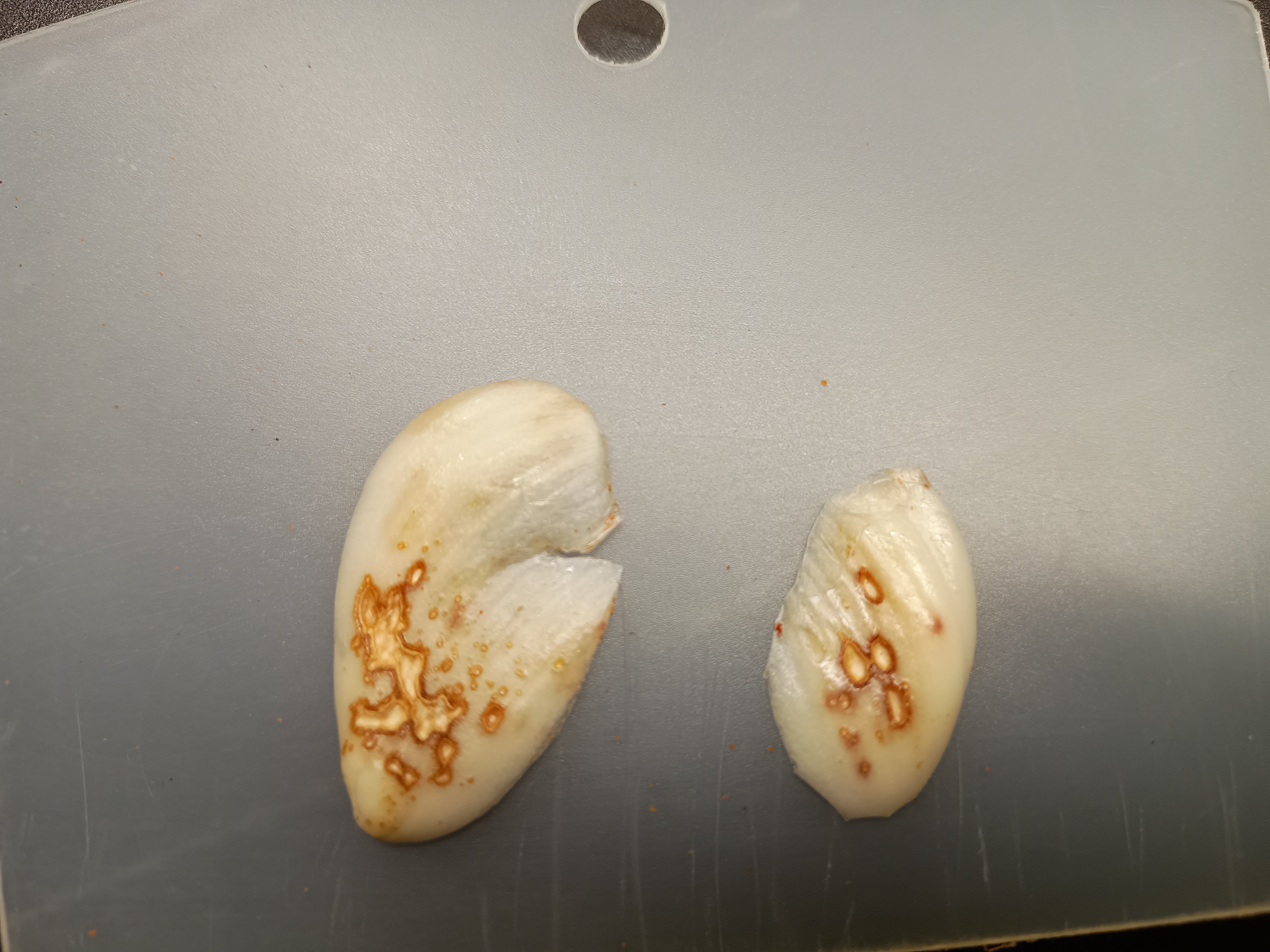 Dobrý den koupil jsem sadbový česnek Skalka a na jednotlivých stroužcích jsou po oloupání hnědé tečky Je to nějaká závada? Děkuji za odpověď Zdeněk petras