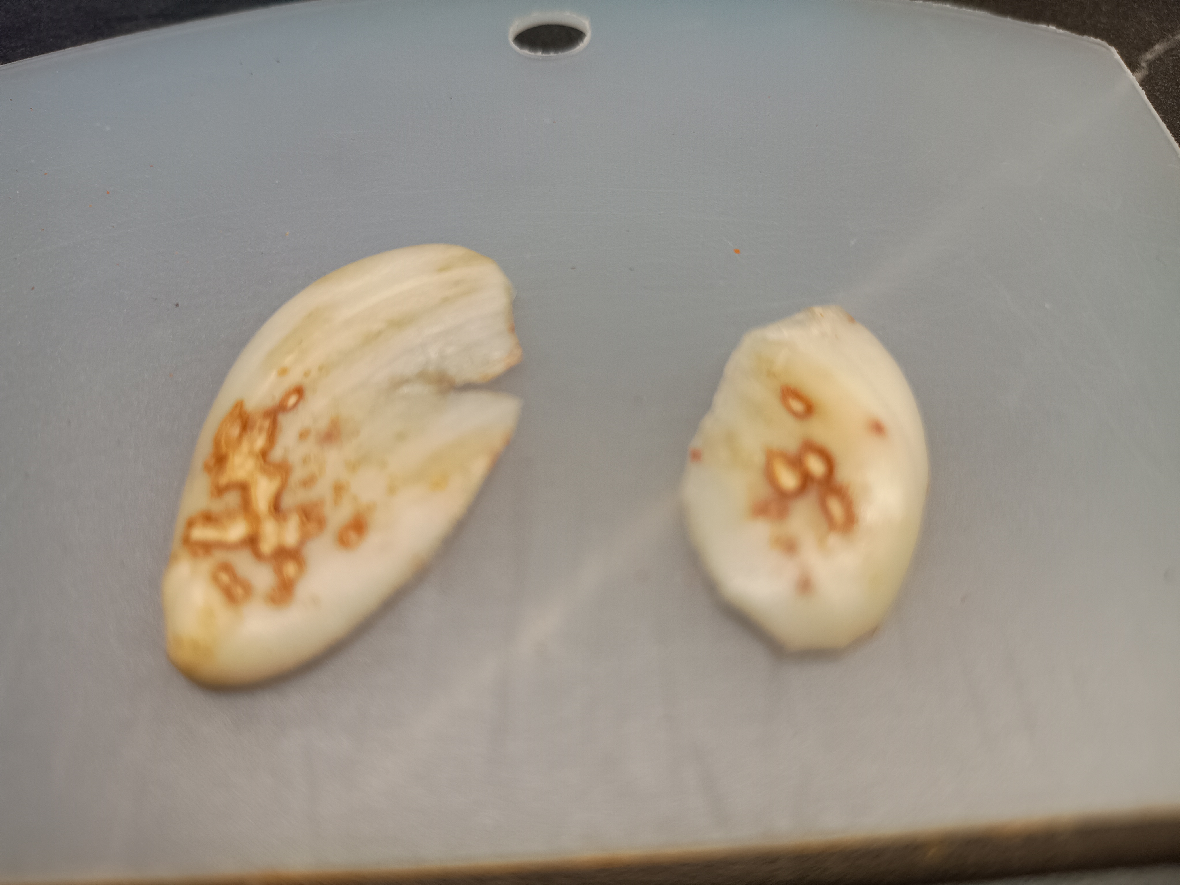 Dobrý deň, pozorujem u niektorých strúčikov takéto sfarbenie do ružovej farby ,čo to je ? Niekde som čítal že sa o nič vážne nejedná a je to len reakcia na látky v pôde . Hniloba to nie je , cesnak nemá pachuť a ani vôňu po hnilobe. Takéto strúčiky putujú do koša. Jedná sa o najmenšie strúčiky z hlavičiek z ktorých som bral na sadenie . Tie ktore som sadil boli pekné veľké pevné , bez poškodenia. Tieto ružové strúčiky mali po väčšine poškodenú "škrupinu" . Ďakujem .