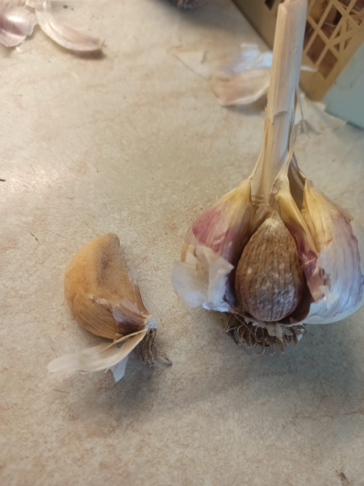 Při sklizni byly krásně pevné, ale postupem času musím stále přebírat a vyřazovat. Česnek byl moc pěkný ale ještě se mi to nestalo, že by se tak rychle kazil.