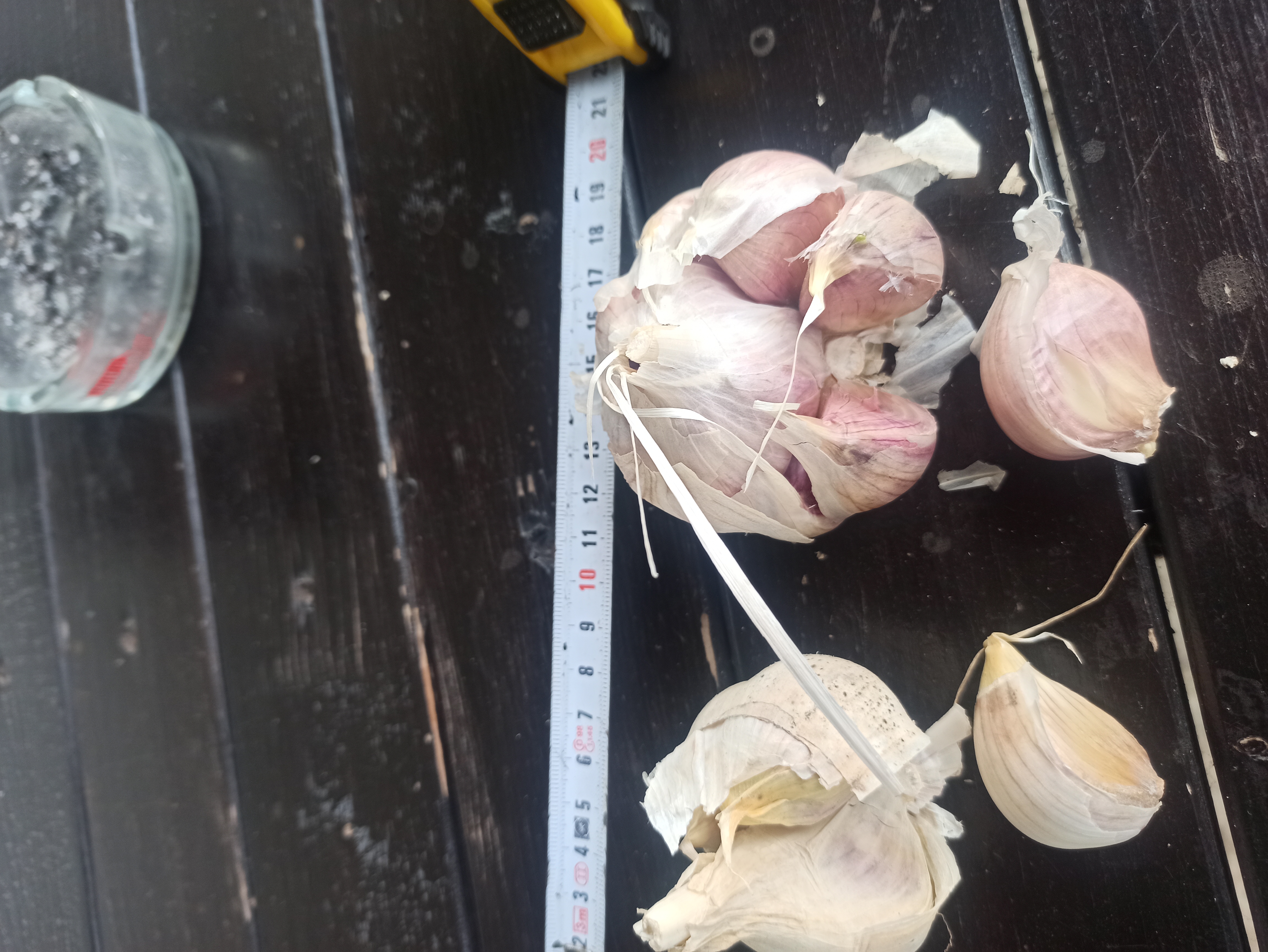 Letos jsem měl problémy s rovnoměrností dozrávání česneku. Některý by měl už zakroucené stvoly, kdybych je neodstranil, u ostatních se ještě ani neobjevily. Tím myslím u stejného druhu. Rusinka měla až deset dužnatých listů. Kdybych čekal až na správný počet dužnatých listů, byl v zemi ještě teď.