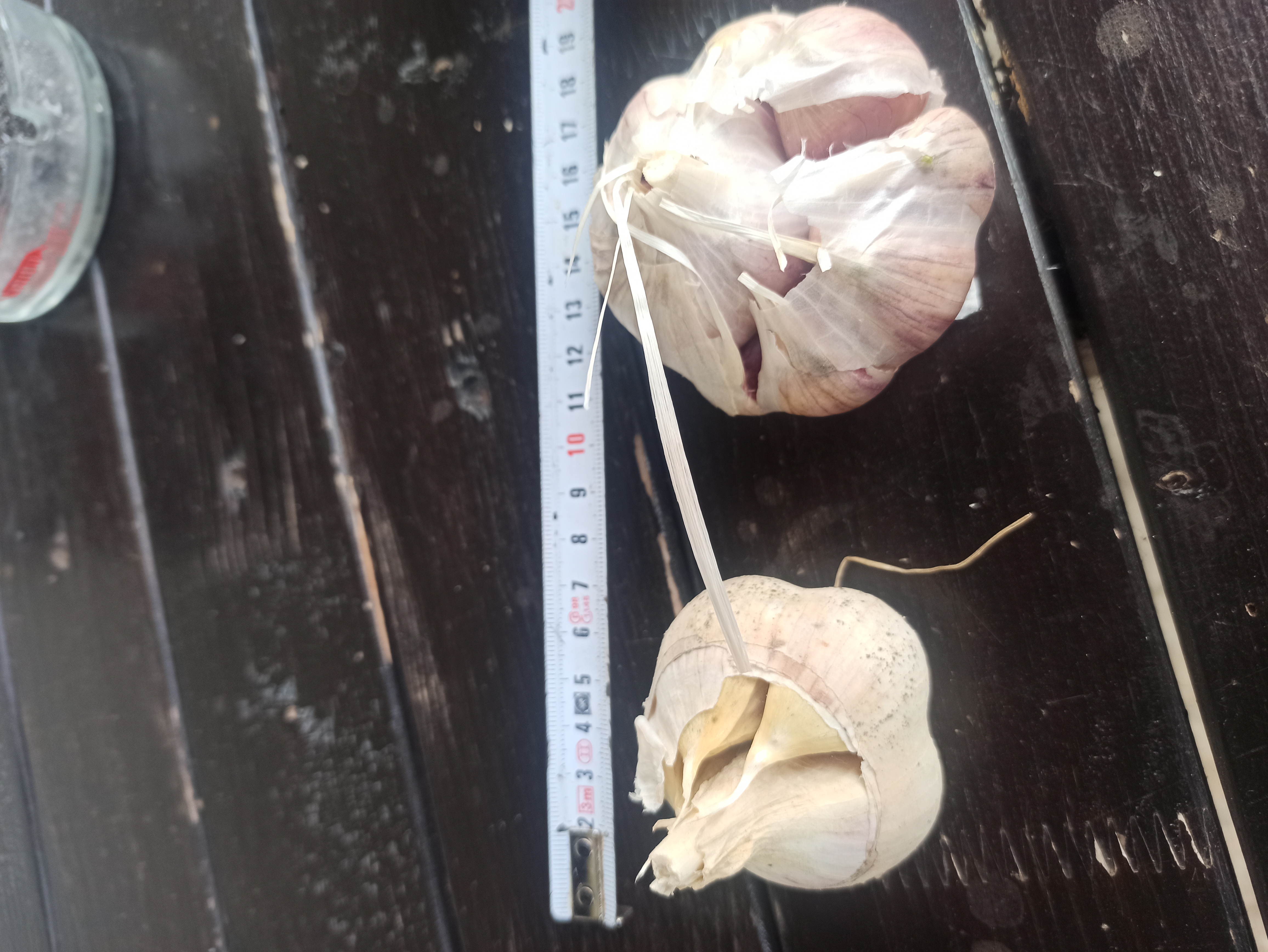 Česnekovou sadbu mám svojí a půlku kupuji u pana Kozáka. Malé stroužky nesázím, nemají tolik zásob, kdyby byly špatné podmínky. Skutečně veliké také ne, protože hrozí "dvoják" hlavě když podpučí se začíná dělit.