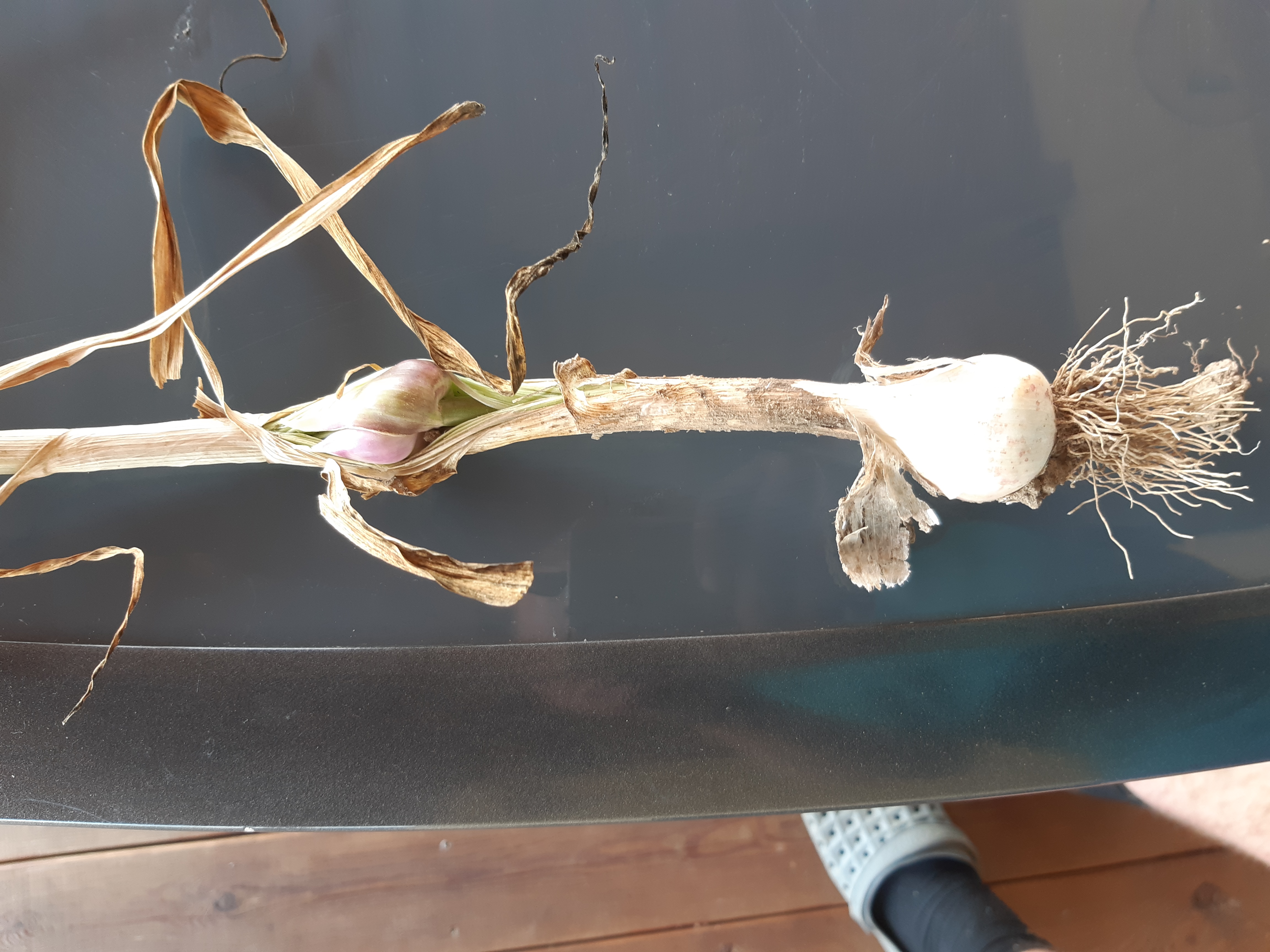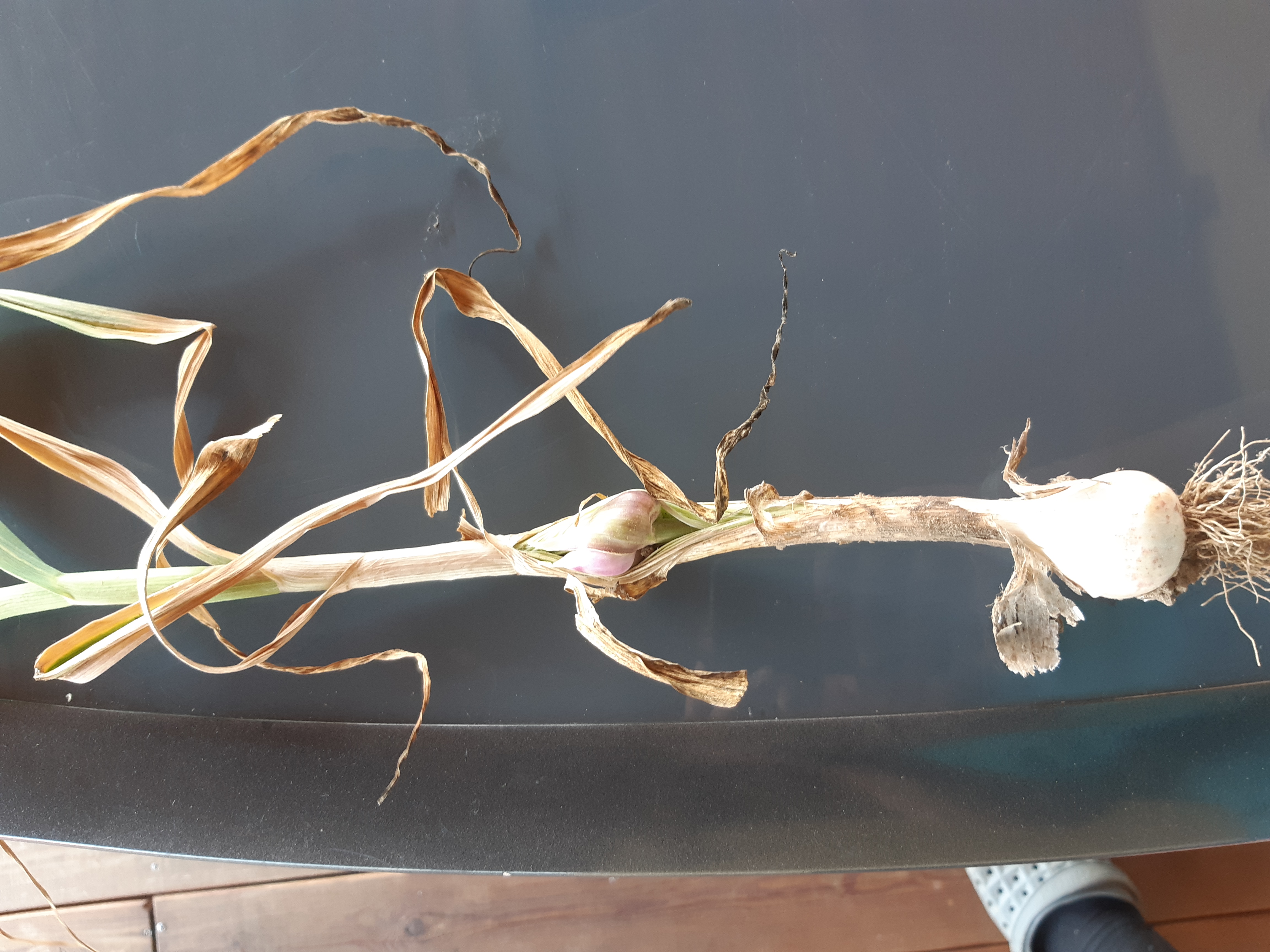 letos jsem kvůli pracovnímu urazu musel nechat česnek 2 dny sklizený na vlečce. Dnes při rozkládání na sušení se vyplnily moje obavy - česnek při podlaze vlečky začal chytat plíseň a listy má jak želé.